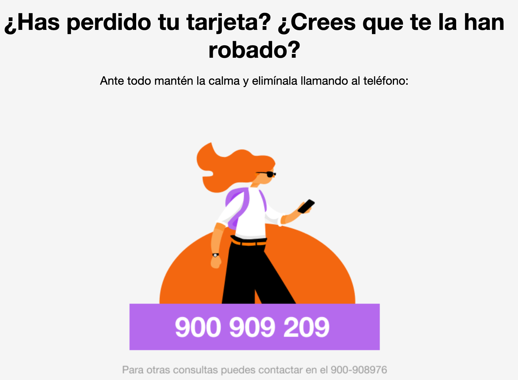 El primer número, el 900 909 209, solo sirve para cancelar la tarjeta o congelarla. No te atiende ningún humano, solo un bot.